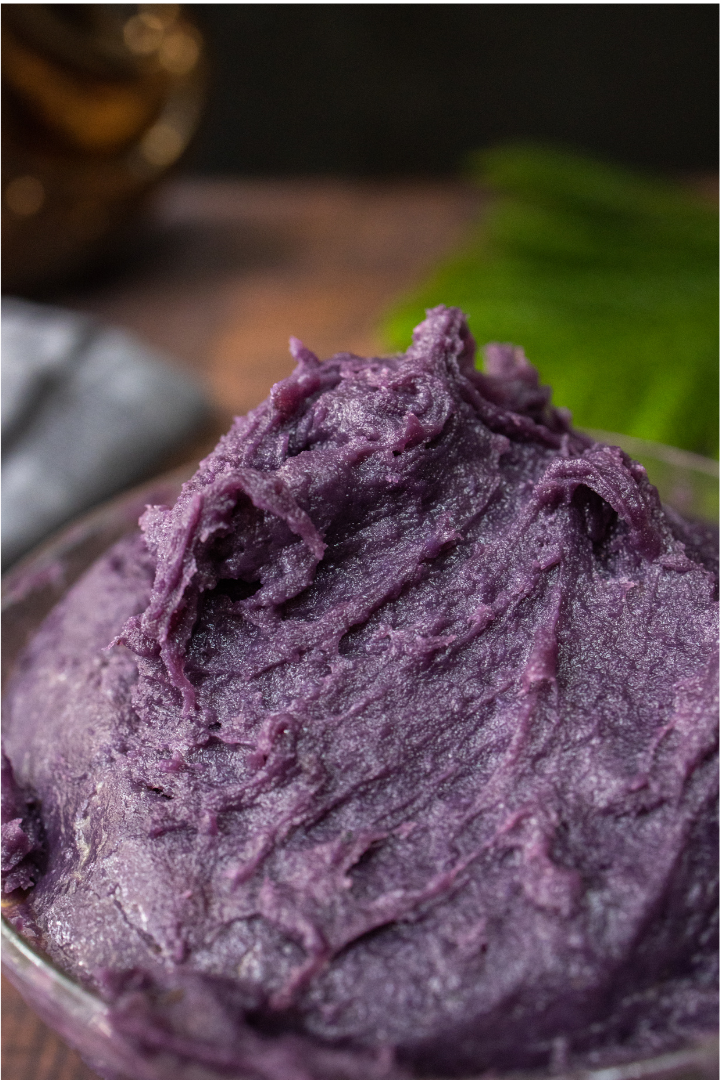 Ube (pronounced oo-beh) is a purple yam native to the Philippines, known for its vibrant colour and smooth, velvety texture. It has a gentle, well-rounded sweetness with subtle vanilla and light nutty notes, creating a soft, balanced flavour. In regions like Bohol, ube is especially valued, where it has long been grown and used as part of local agriculture, reflecting its roots as a staple crop across the country.